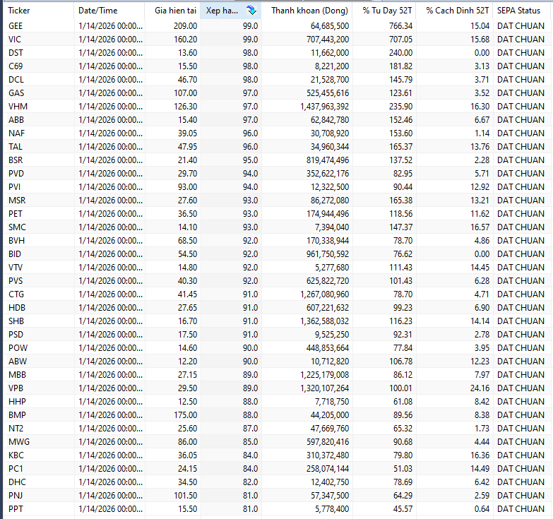 14/1/2026: Danh sách cổ phiếu Mark Minervini