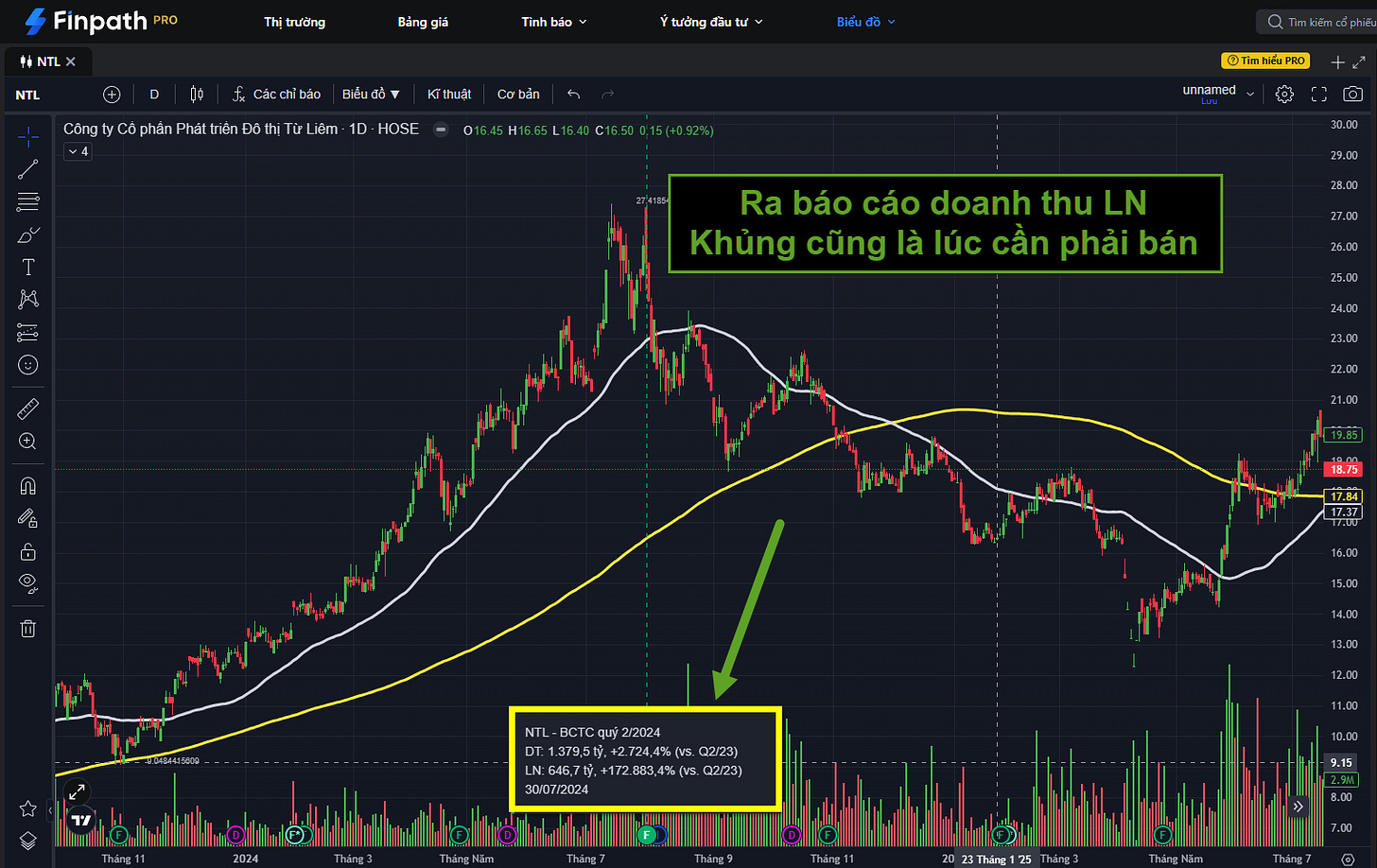 => Lưu ý: sau khi đã mở bán và book doanh thu lợi nhuận khủng thì đây là lúc bán Doanh nghiệp đã đạt đỉnh chu kỳ kinh doanh/tăng trưởng: Khi mọi động lực tăng trưởng đã được thể hiện toàn bộ vào lợi nhuận, ví dụ như quý 2/2024 công ty Nhà Từ Liêm ghi nhận toàn bộ lợi nhuận dự án lớn, sau đó không còn động lực cho kỳ vọng tiếp theo thì nên bán. Lúc này dù đang lãi hay lỗ cũng phải bán vì cổ phiếu đã hết chu kỳ.