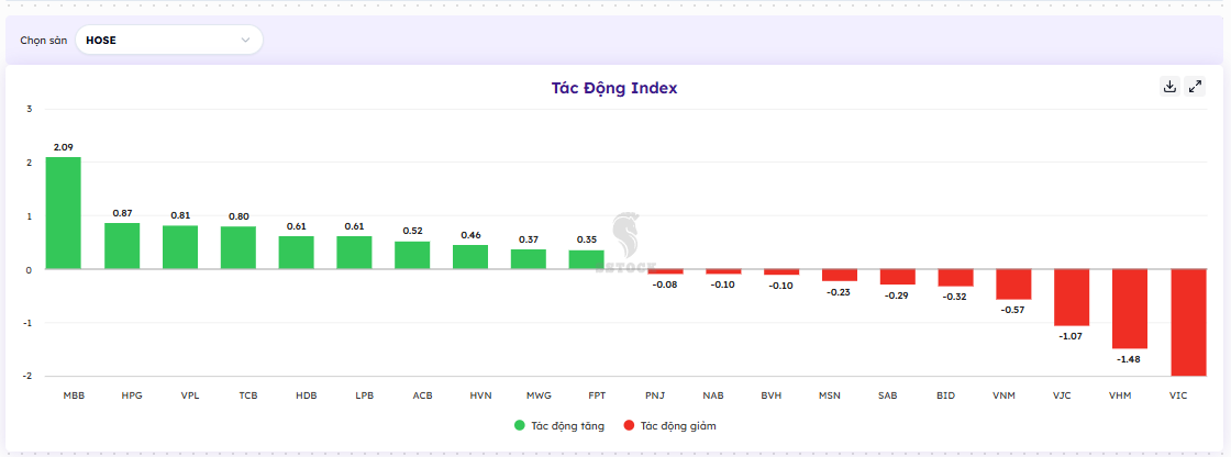 TCB: Tăng +1.6 điểm cho Index. Là mã Bank đóng góp tích cực thứ 2 sau MBB.