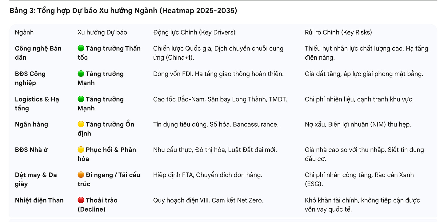 Bảng 3: Tổng hợp Dự báo Xu hướng Ngành (Heatmap 2025-2035)
