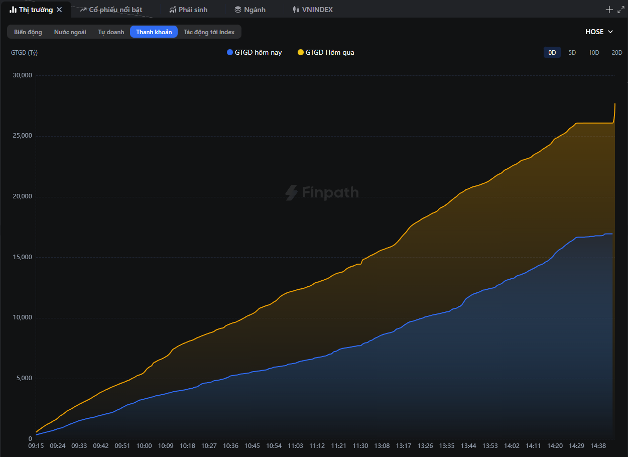 Thanh khoản: Đạt 21.324 Tỷ đồng, giảm 32.8% so với phiên bùng nổ trước đó.
