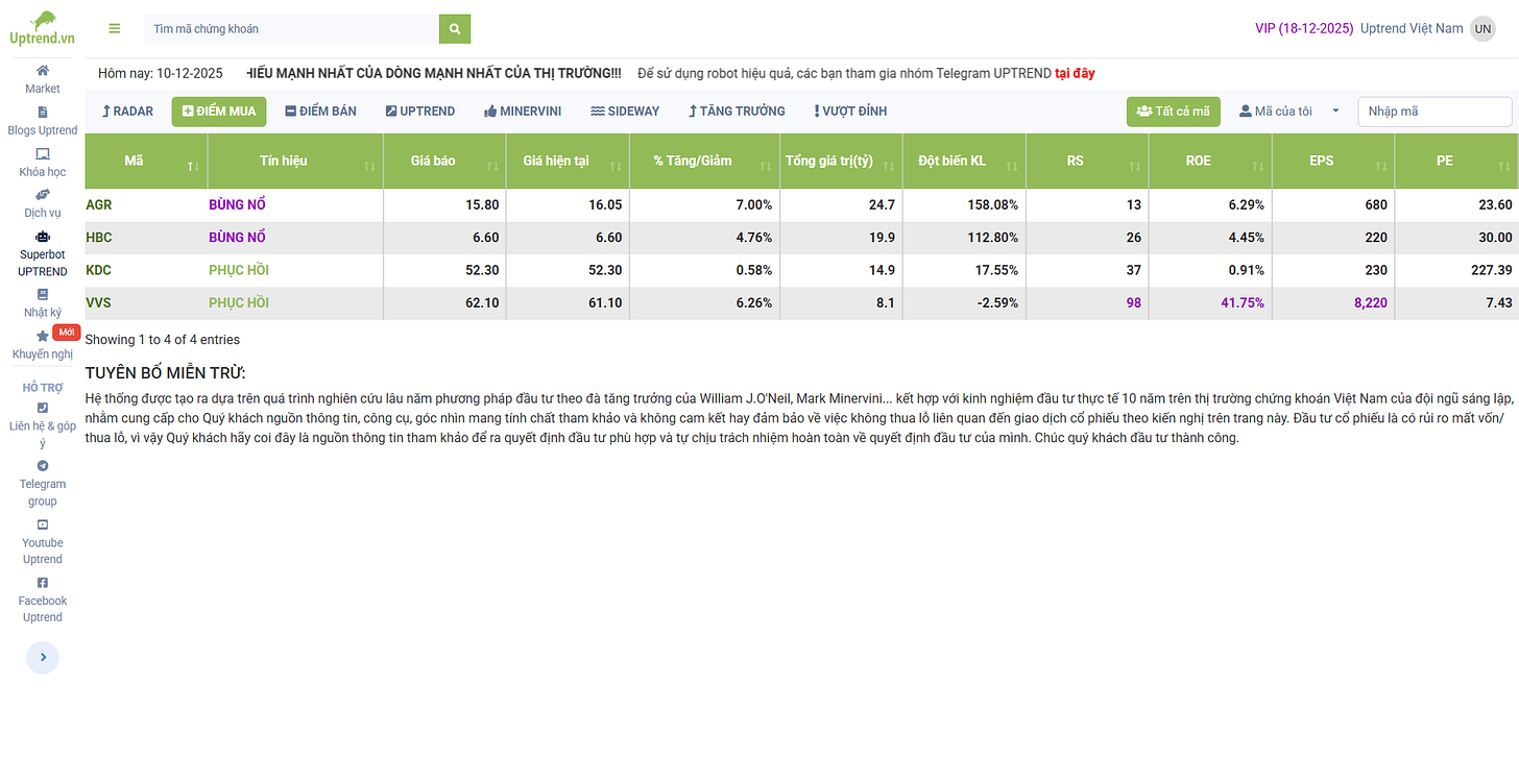 Dữ liệu: RS 95. Mới vào Top dòng tiền.
