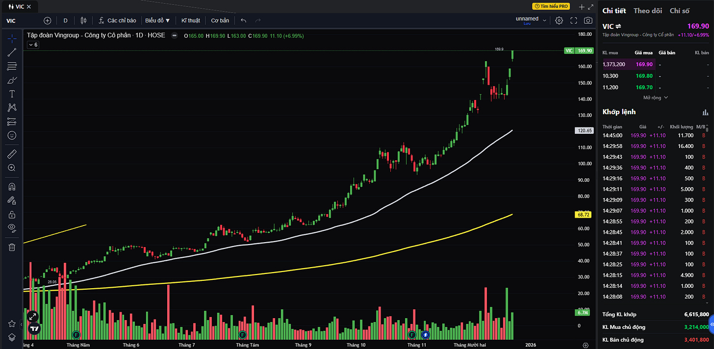 VIC (Vingroup): Vượt đỉnh lịch sử. Tác động +20 điểm. RS 99 (Max).