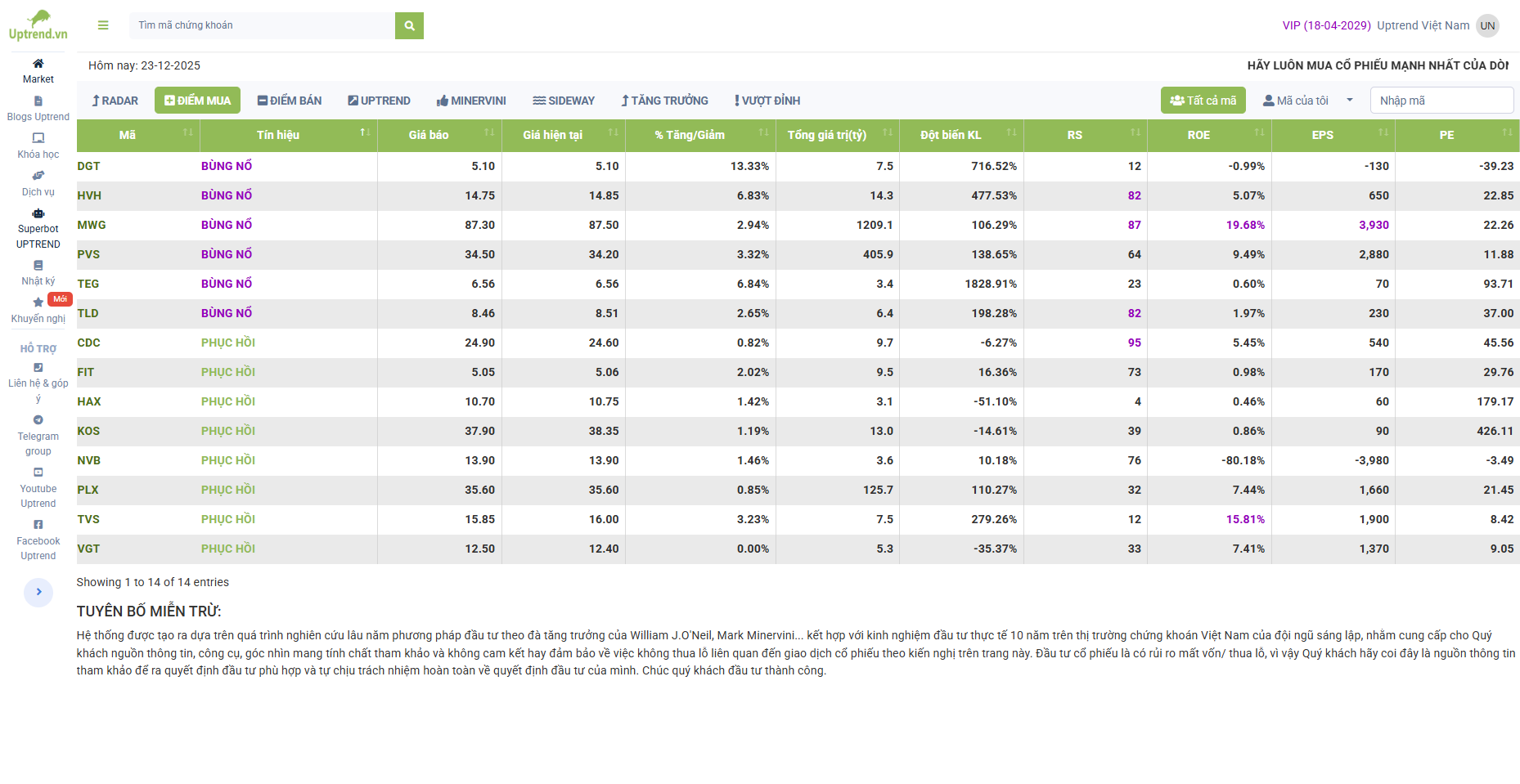 RADAR SĂN CƠ HỘI: Tiêu chí: Bùng nổ + RS Cao + Tây mua/Dòng tiền mới.