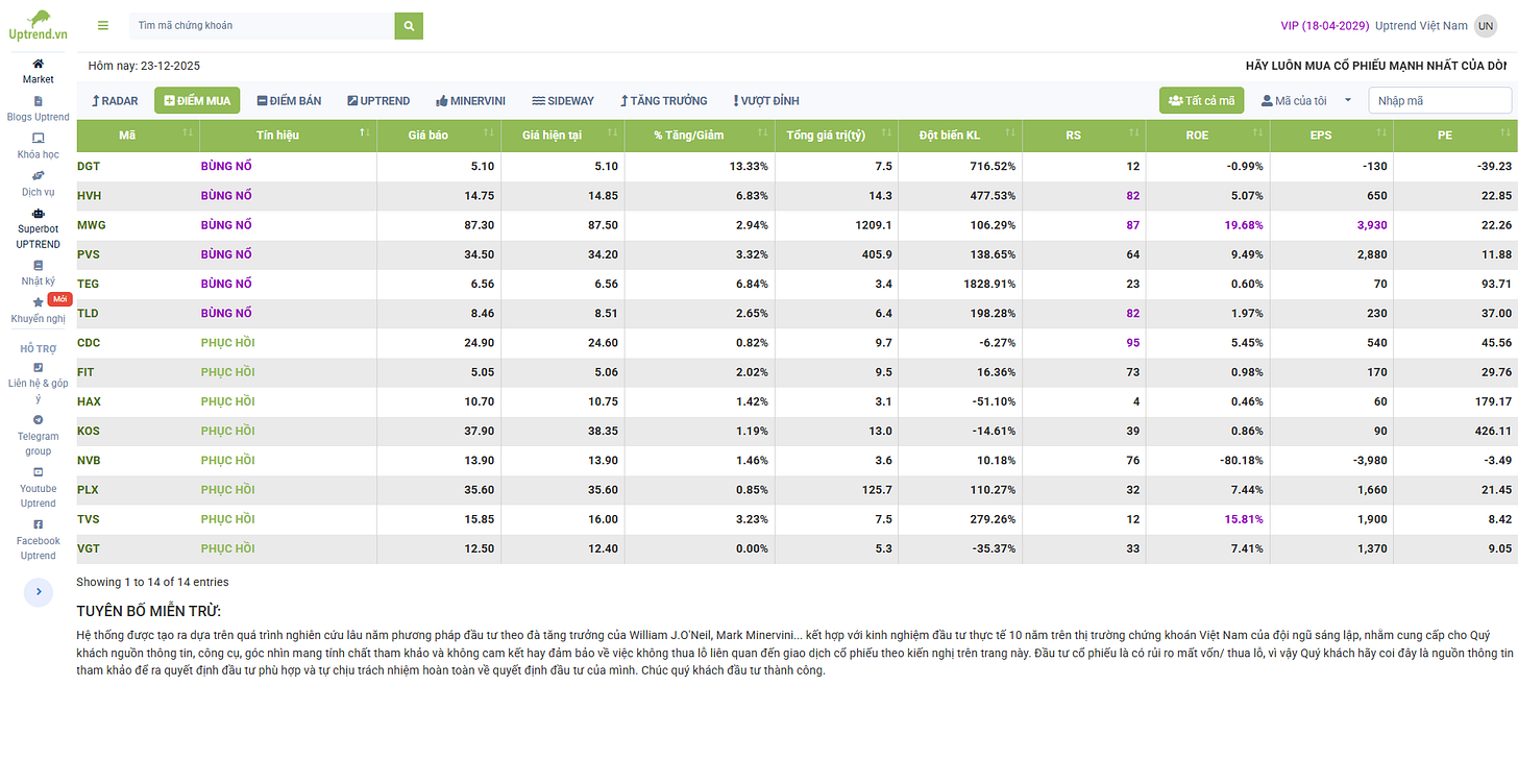 Phiên trước (22/12): Bùng nổ theo đà, xác nhận đáy.