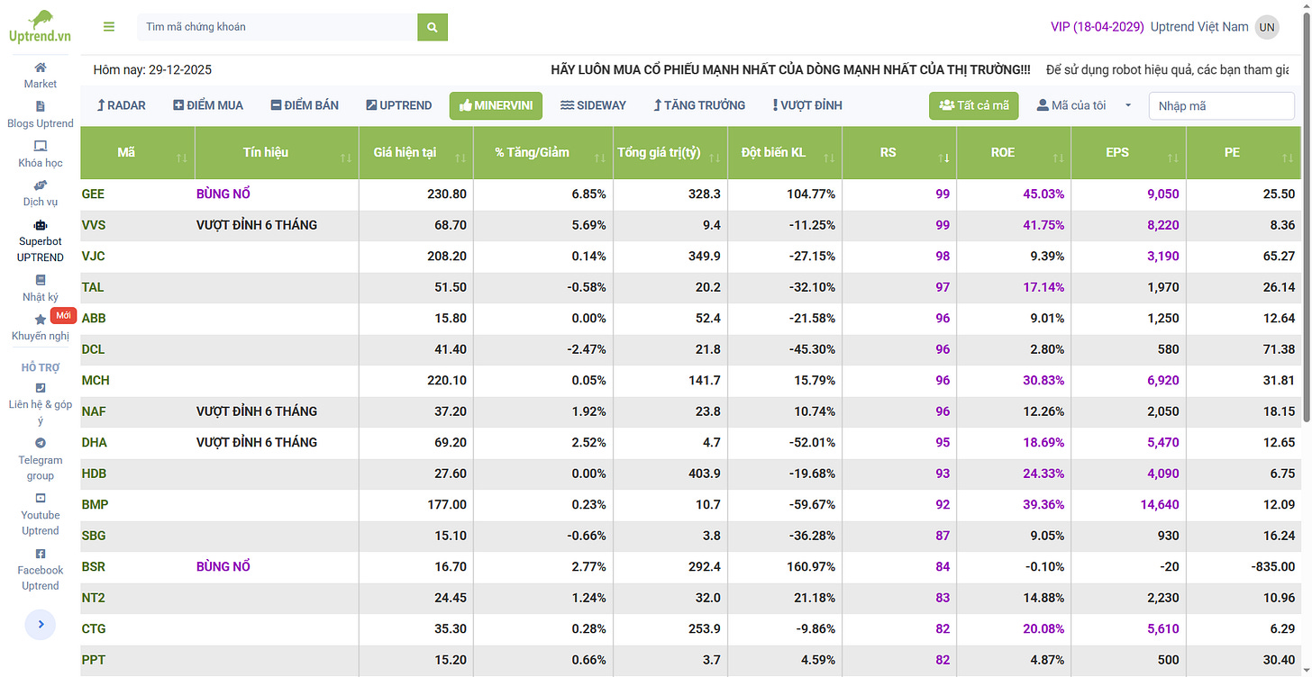 Đúng: Các mã có RS cao như GEE (RS 99), STB (RS 89) tiếp tục bùng nổ, mang lại lợi nhuận tốt.