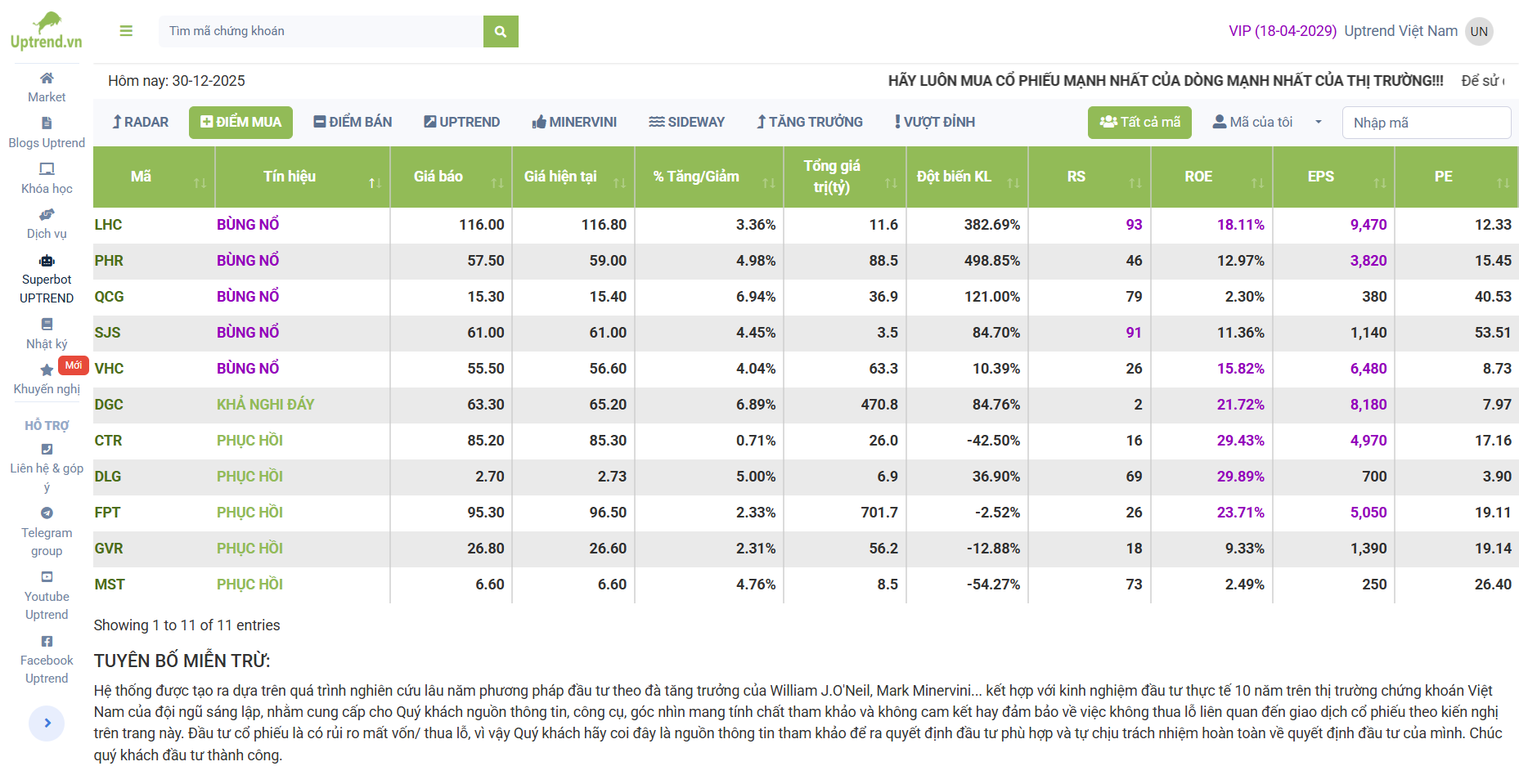 Vị thế: Thỏa mãn hoàn hảo tiêu chí Mark Minervini.