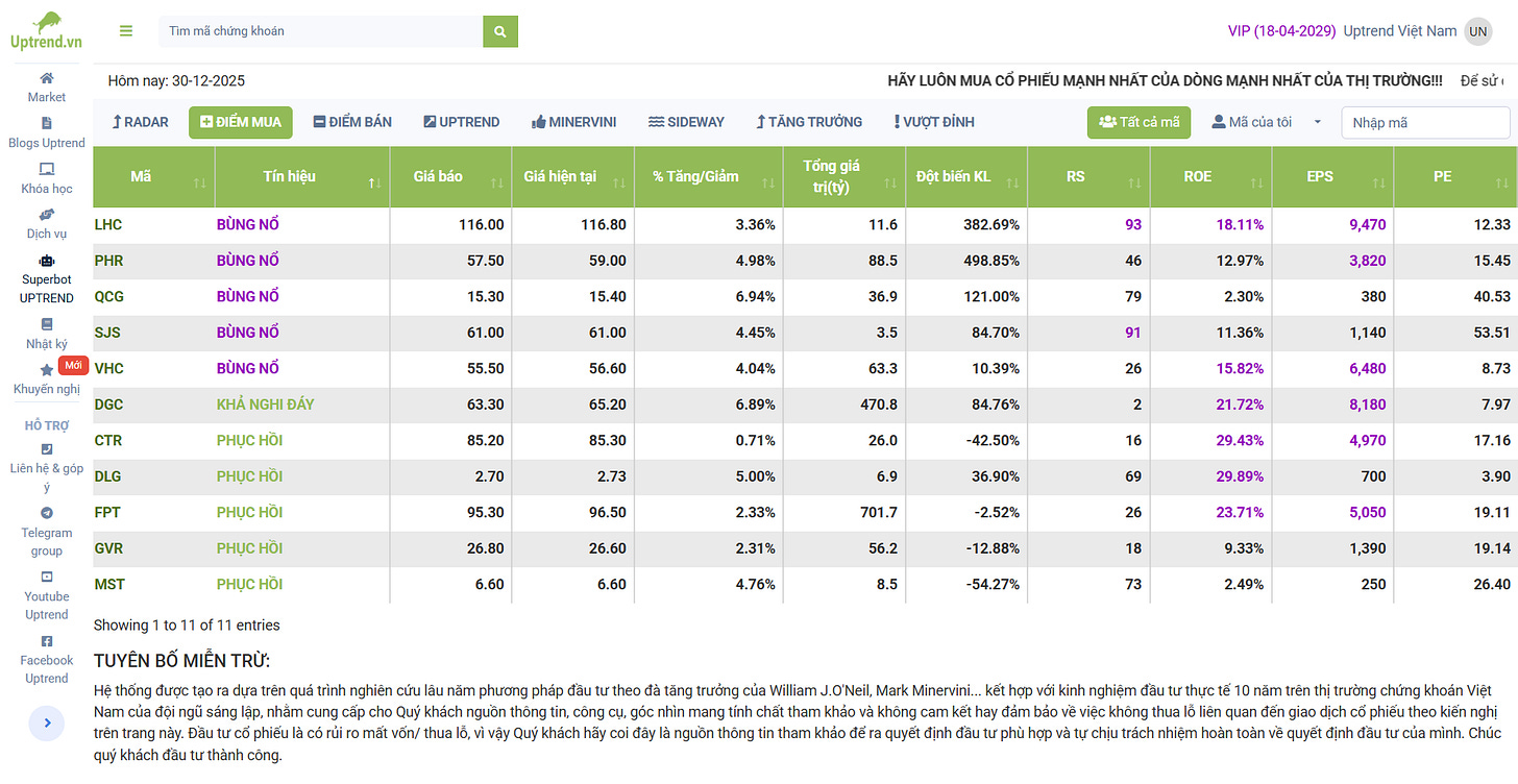 MIỄN TRỪ TRÁCH NHIỆM: Báo cáo được tổng hợp tự động từ dữ liệu thực tế, mang tính chất tham khảo cho cộng đồng Duy Uptrend.